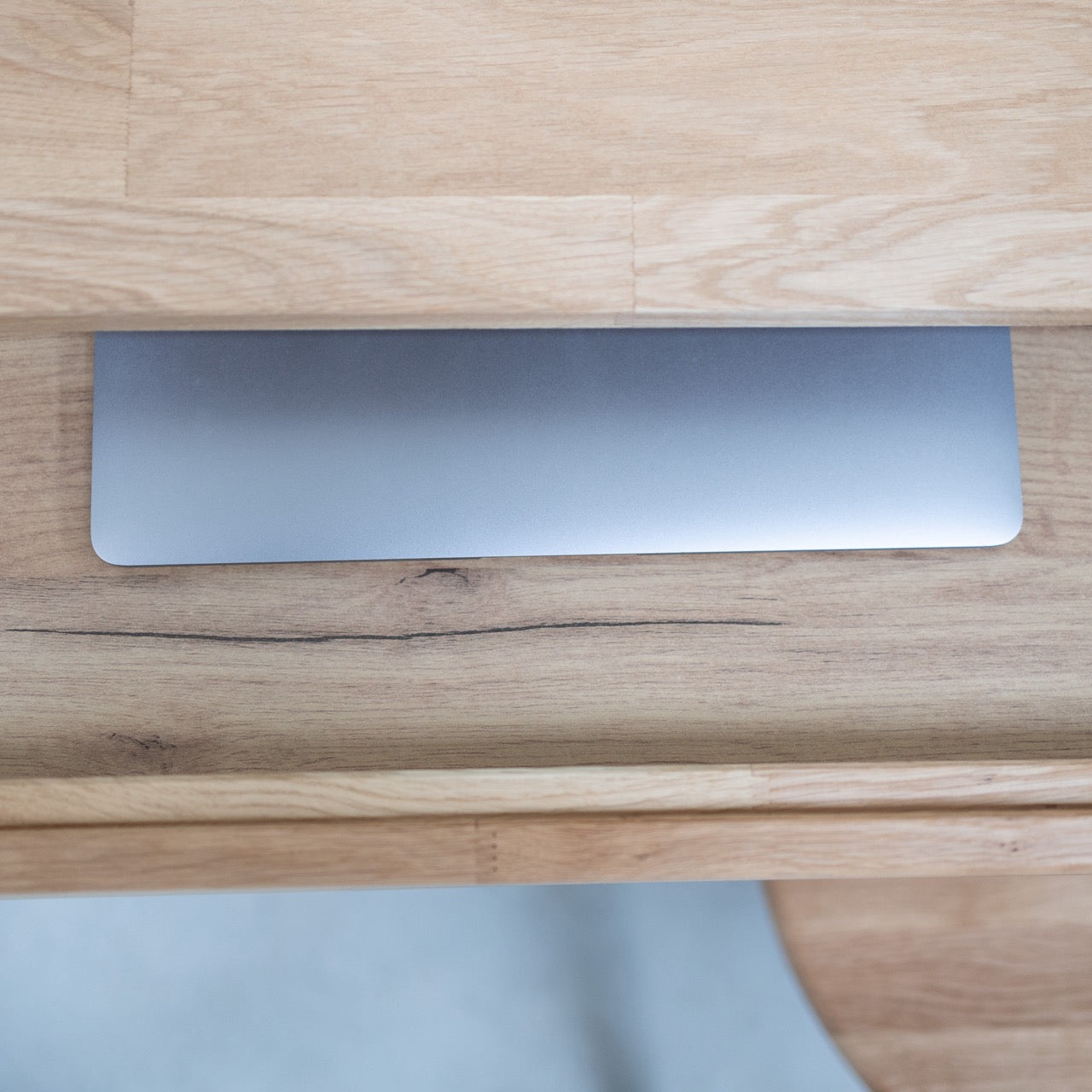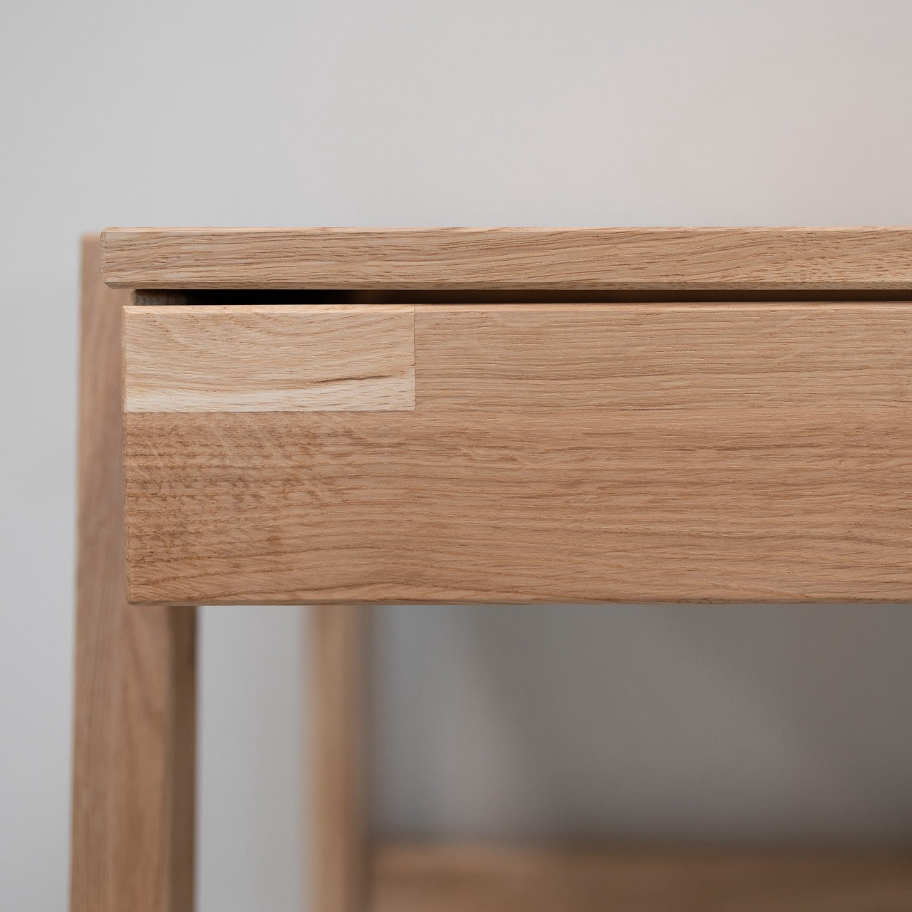 Der kompakte Schreibtisch „Eric“ aus massiver Eiche eignet sich perfekt für einen stilvollen und komfortablen Arbeitsplatz. Hergestellt aus hochwertiger, nachhaltiger Eiche mit Öl-Finish, verleiht es der Umgebung natürliche Wärme.