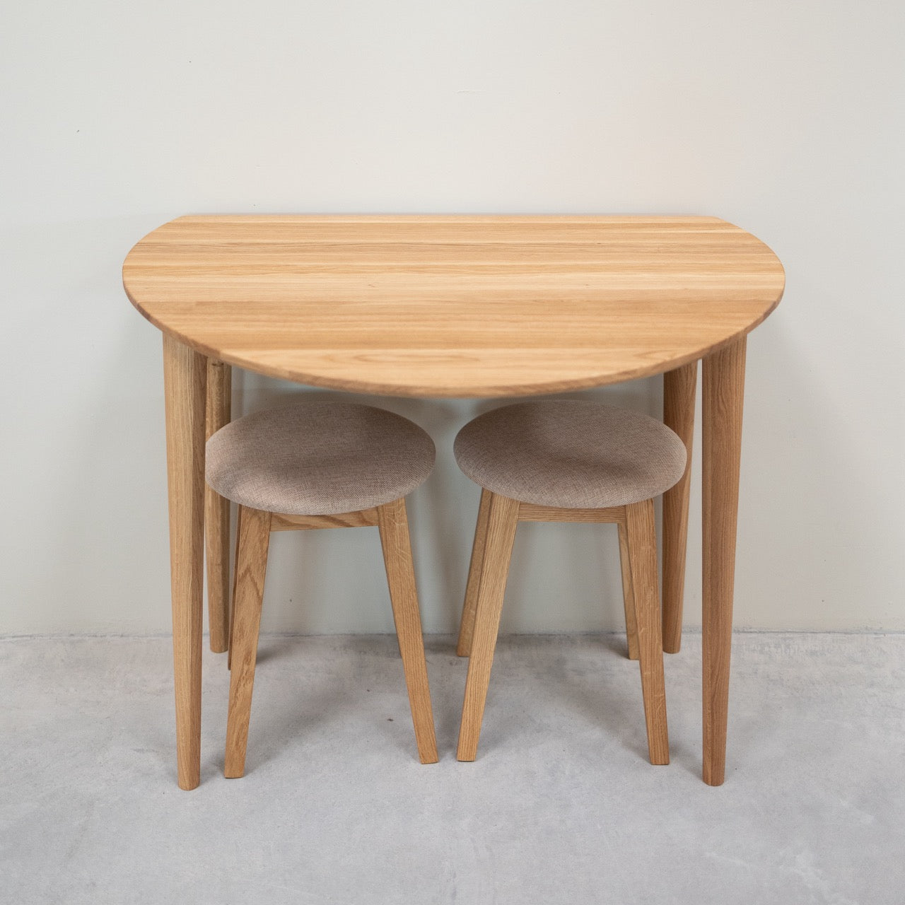 Material: Massives Eichenholz in Naturfarbe, beige gepolstert
