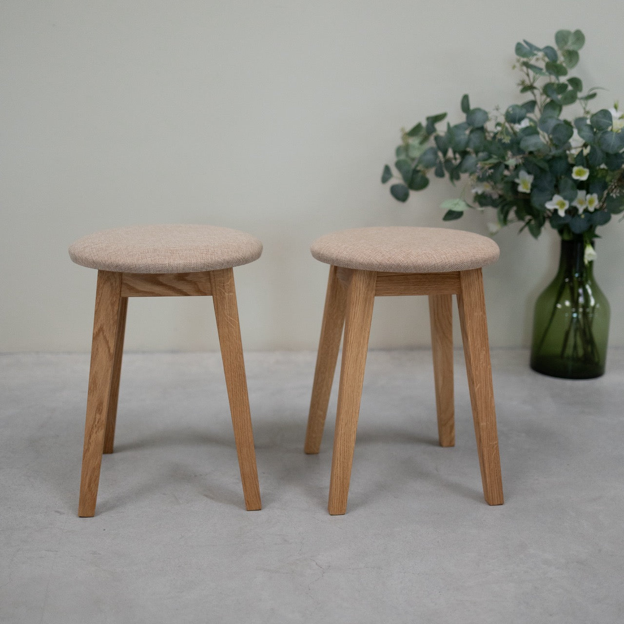 Die Hocker sind aus gepolsterter massiver Eiche gefertigt und vom skandinavischen Stil inspiriert. Diana verkörpert sowohl Eleganz als auch Robustheit. Die breite, einladende Sitzfläche bietet optimalen Komfort. Die klaren Linien seines Designs unterstreichen eine moderne Ästhetik und bewahren gleichzeitig einen zeitlosen Charme, der diesen Hocker zu einer anspruchsvollen Ergänzung für jeden Wohnraum macht.