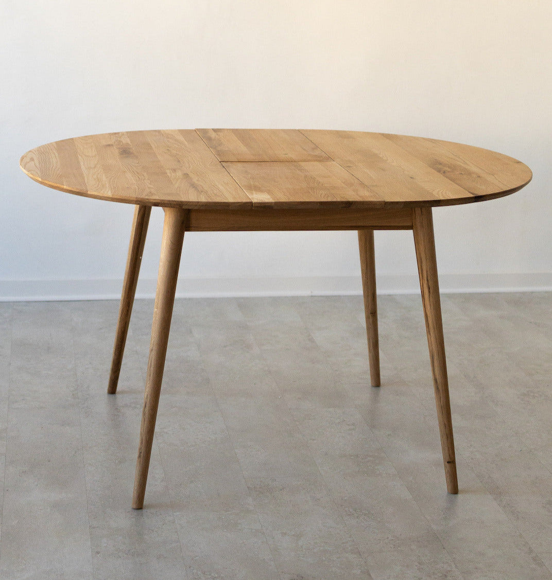 Für kleinere Räume ist unser Esstisch die perfekte Lösung. Escandi 3. Rund, mit einem unverwechselbaren nordischen Stil, verwandelt er jeden Raum in einen hellen und gemütlichen Ort. Und lassen Sie sich nicht von seiner geringen Größe abschrecken: Er ist ein ausziehbarer Tisch, der sich in ein Oval verwandeln lässt, wenn Sie Gäste empfangen möchten.
